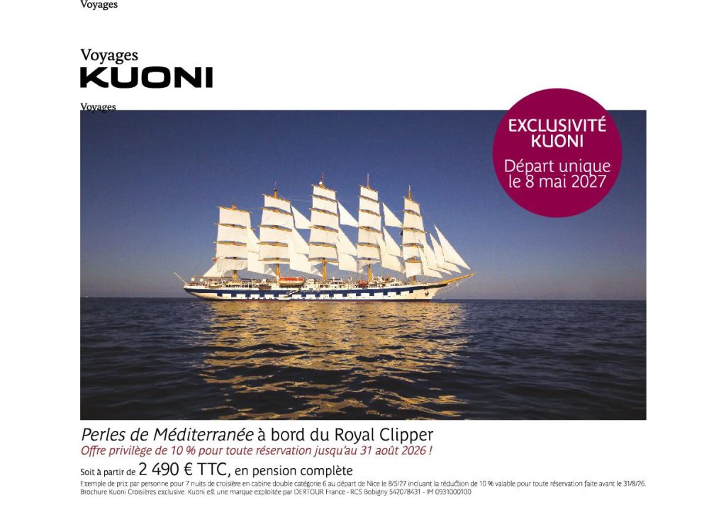 CROISIERE EXCLUSIVE A BORD DU STAR CLIPPERpar Virginie Barbedans ! PROMOTIONS !sur Publié le 26 mars 202630 mars 2026 Montez à bord du Royal Clipper, immersion en visite virtuelle Prendre contact avec l’agence