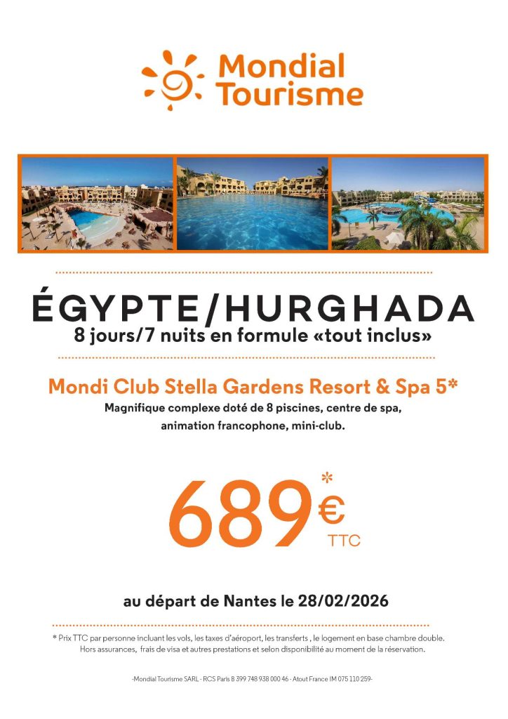EGYPTE / HURGHADApar Virginie Barbedans ! Promotions !sur Publié le 5 décembre 202515 janvier 2026 Prendre contact avec l’agence